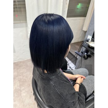 今回のカラーはブリーチ1回からでも可能なネイビーカラーです!